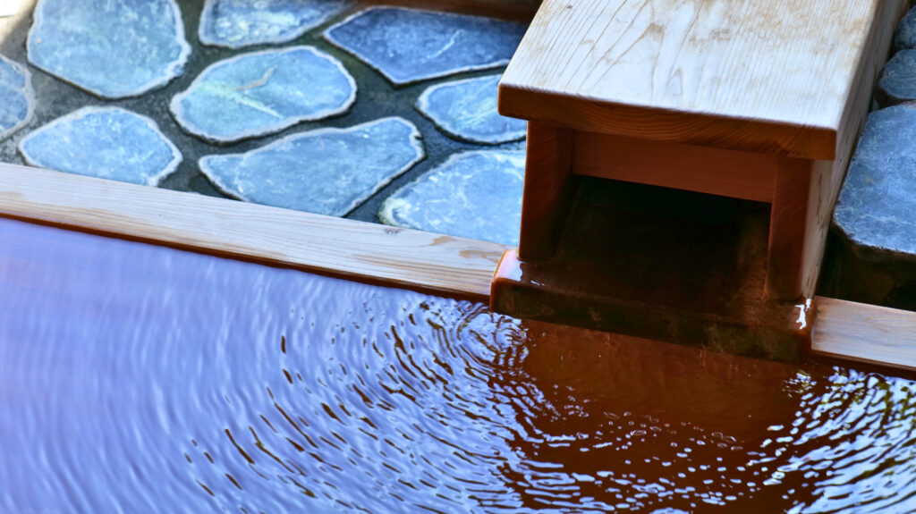 信夫温泉の湯は、低張性アルカリ性硫黄泉(pH約8.6)、源泉温度は約35℃