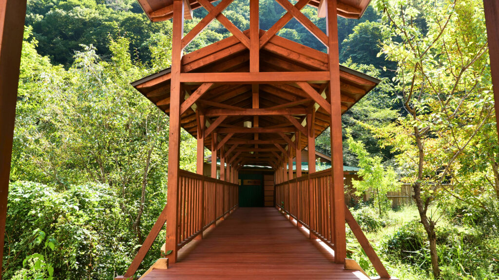 源泉掛け流しの温泉と山景色が見える内風呂(炭酸泉)付きで
