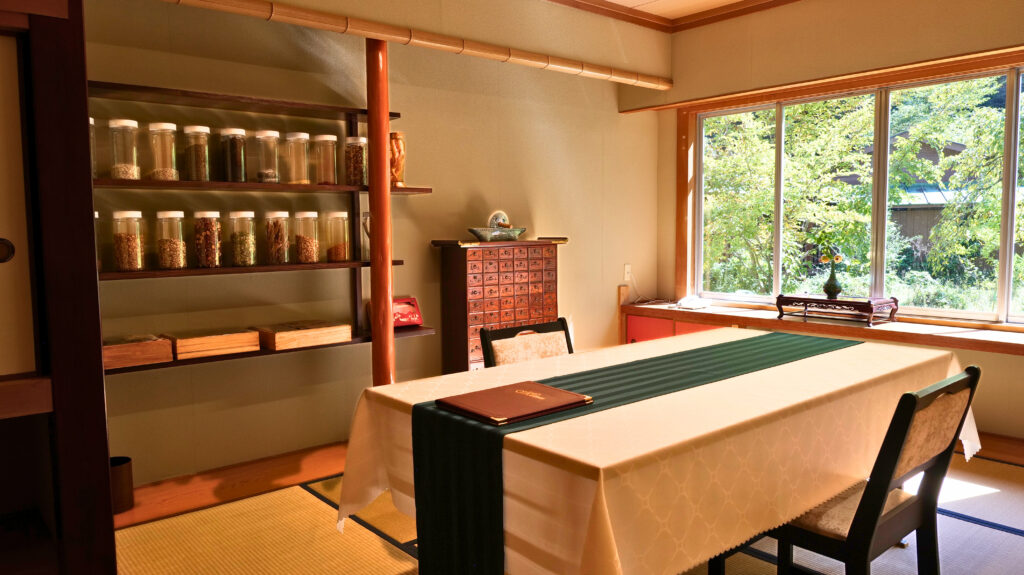 お料理は、福島の山菜・薬草を中心に東北の旬の素材を取り入れた漢方薬膳料理
