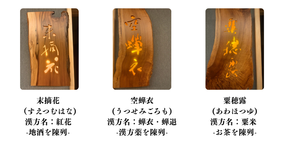 各部屋の名前には薬膳の名前を含んで、